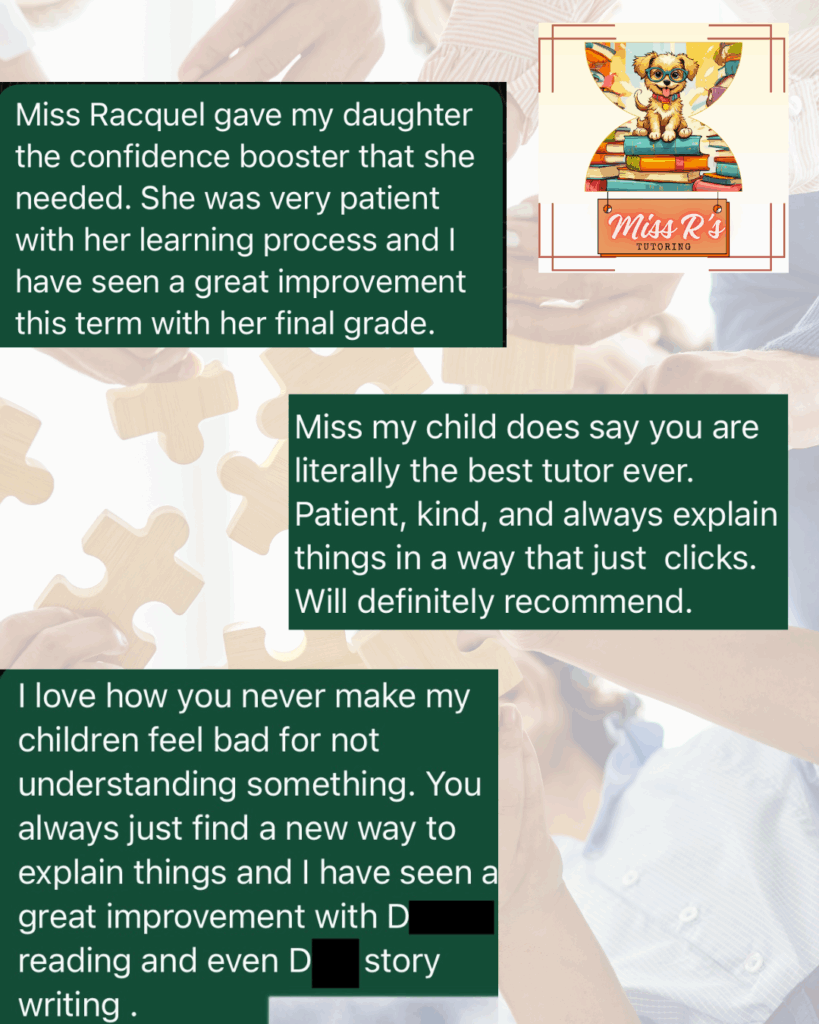 Welcome to Miss R Tutoring Offering students extra guidance from the comfort of home. Flexible, engaging and tailored full-time virtual homeschool program as well as part-time after school tuition to help YOU succeed. Connect With Us Facebook Instagram Tiktok MOE Homeschooling Policy Viiew Subjects & Pricelist